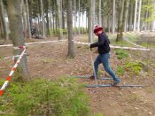 Přejezd do Velkých Opatovic. Jedna disciplína slalom RC modelem, jede za nás Tom Chládek, nutno uznat, že bezvadně, až se Rosťa na oko zlobí, aby nám tam udělal nějakou chybu :)