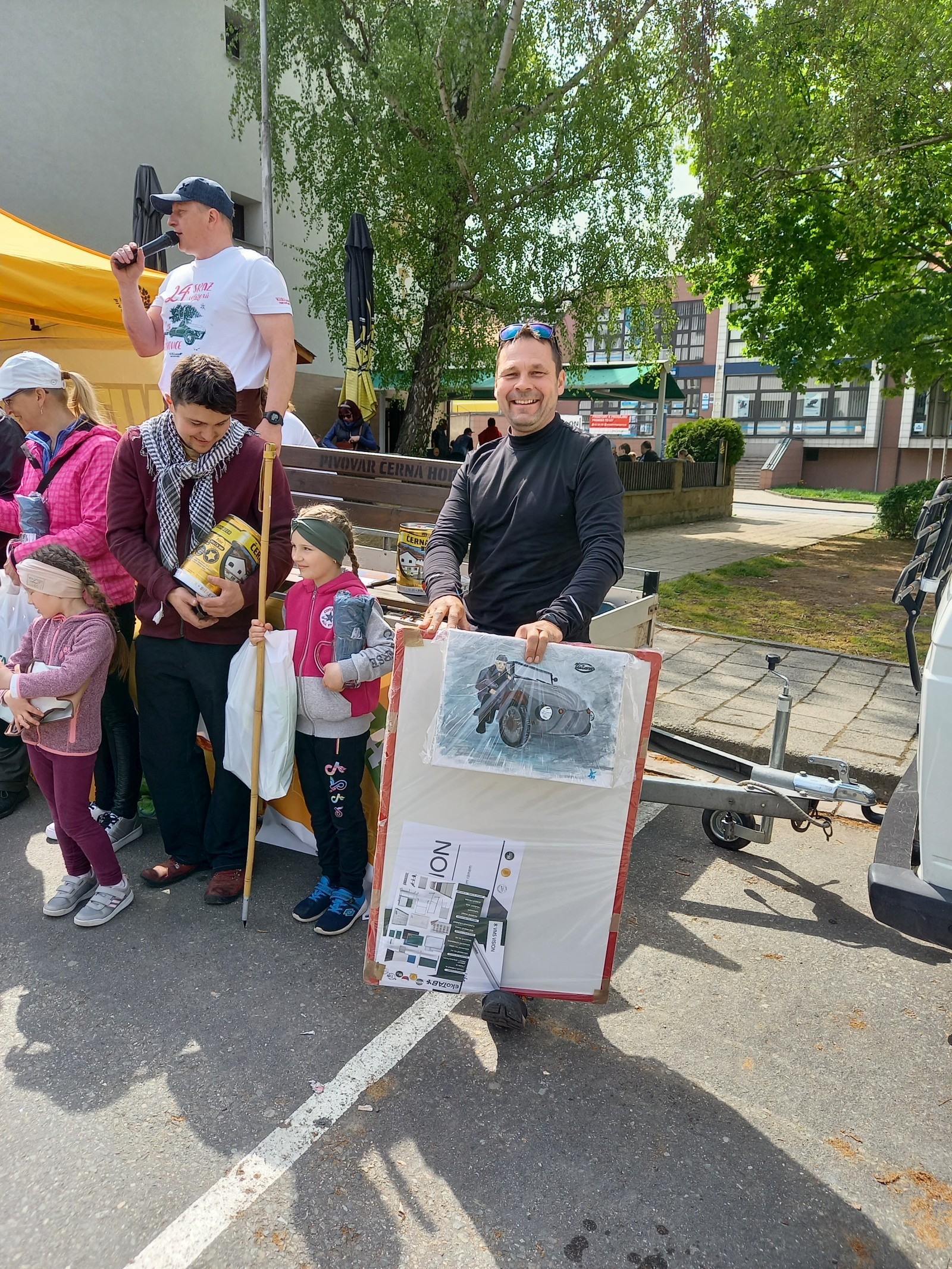 Neděle, kolona Boskovicemi, pecka jako vždy. Loučíme se, rozdělujeme a trháme - Robert s Pavlem Jurou alias Ztraceným alias Kuberou mizí z kolony, stejně tak Rosťa s Osudem. Já s Mildou, Jirkou a Zdenkem čekáme na výsledky. Zdenek zůstává i potom na montáž sedačky. Výsledky: 131 registrovaných strojů, nějaké neregistrované, tak řekněme 140 velorexů. Nebudu napínat, Rosťa s Osudem se dělí o 60-61 místo, já pátý a Milda, tramtadadá, PRVNÍ. Díky, díky, ale jednou to muselo přijít :) Gratulujem a těšíme se na zapití, Milda jistě ví, co se sluší a patří :))) Ceny pobírá Alda do transportéra, tradiční kafe a ledňák na benzince a palba domů. Milda cestu ohodnotil, že to nebyla jízda, ale nízký let. Pecka :)