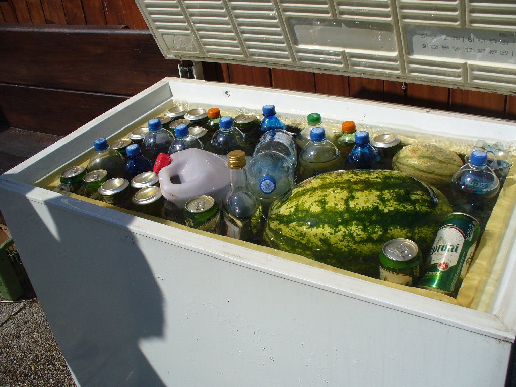 ... a po necelých 400 km (393km) jsme pár minut před 17h dorazili do předem vyreferovanéko kempu Venus v Balatonczepezdu. S paní byla super domluva. Já začal anglicky, ona taky, když chybělo nějaký slovíčko mě, hodil jsem německý, a plynule jsme přešli do něčeho jako slovenština. Cena za 7 lidí, 3 stany a 6 cars (já jsem teda říkal halfcars) byla v přepočtu za 2 noci 2450 Kč (to by i Mušov byl dražší). Navíc teplý sprchy po celý den zdarma, čistý záchody s papírem, a klídek maximální. Prostě super. Pivko za 50, to taky šlo, navíc Robert tahal z útrob hadráka další a další kartony starobrna (vůbec nevím, kde to všechno vezl) takže jsme žízní netrpěli...