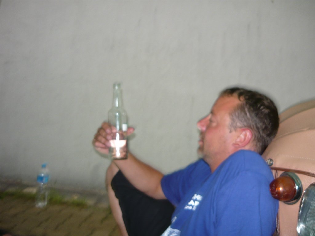 V Rakouskou jsme dojeli kolem Neusiedlerských jezer v asi 15hod do Podersdorfu, kde jsme měli plánováno překempovat. tolik lidí už jsme dlouho pohromadě neviděli a kemp byl beznadějně plný. chvíli jsme špekulovali jestli bychom to protáhli až na Mušov, ale zatahovalo se a vypadalo to bledě. Chlaďasi objevili v mapě kemp, 4km od mostu přes Dunaj, takže jsme vyrazili. Dojeli jsme tam se stavem tacho cca 690 km právě včas. Jen jsme postavili stany, začlo pršet. Osud vylovil ze stroje velikou plachtu a postavili jsme mezi hadrákama šapitó, uvařili večeři a zapíjeli rakouským pivem (3E - to už je pro našince celkem drahota). Prokládali jsme to slivovicou a ráno jsme ji ještě měli :o))) Robertovi nešly blinkry, tak ladil Jirkovu elektriku, ale po chvíli se to samo spravilo, tak to radši nechal. No a po sbalení a vystřízlivění jsme vypálili nach hause. Přejezd Dunaje, proplétání mezi slony OMV a zastavili u Mistelbachu na Shellce, kde Mildův hadrák počkal až zastaví a teprve pak mu prasklo lanko od plynu. Je to fakt slušně vychovanej stroj! Během oprav jsme čerpadlářce vysvětlili, že to není citroen, pak jsme minuli ceduli Česká republika, kdo potřeboval natankoval v Hrušovanech a pak už jsme v klídečku doprcali až domů. Pozoroval jsem jak s blížícím se domovem zrychlujeme tempo, ke konci už jsme pálili přes 70 :o)