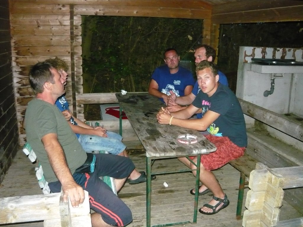 Naskákali jsme do vody, osvěžili se, postavili stany (teda jeden samostan, jeden pidistan a jeden hrad), uvařili guláš a relaxovali. Po celou dobu jsme museli umožňovat všemožným evropským národům fotit hadrolety a vysvětlovat parametry. Večír jsme testli jedinou hospodu v kempu s maďarským karaoke a na výběr na čepu: Staropramen a Borsodi. Samosebou jsme otestovali maďarský :o)